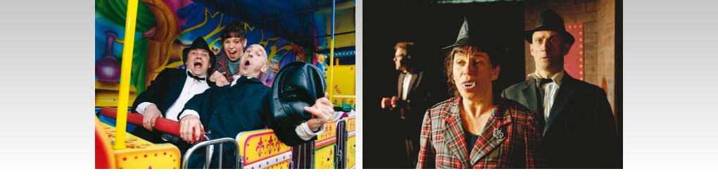 Eigentlich heissen sie Mäder und Bader. Aber das ist ihrem Boss, dem Geisterbahnbesitzer von New Castle, zu kompliziert. Deshalb nennt er sie Mad und Bad, bis er sie eines Tages vor die Tür stellt. Nun stehen sie da. Mit Schweizer Pass, aber ohne Geld und Job. Und sprechen ausser „Huuhh!“ und „Hääh!“ kaum ein Wort Englisch. Miss Sutherland, leidenschaftliche Besucherin der Geisterbahn, nimmt die beiden unter ihre Fittiche, um ihnen Sprache und Manieren beizubringen...